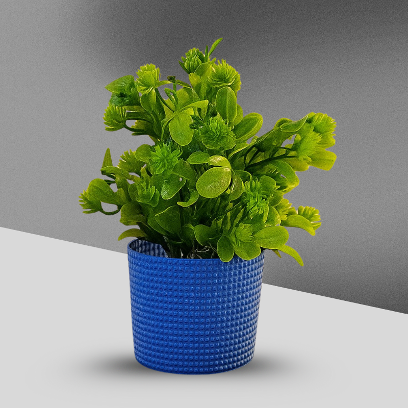 Liven up your space with this compact Artificial Green Plant, featuring rich green foliage in a modern blue textured pot. A perfect addition to desks, shelves, or tabletops—minus the watering.